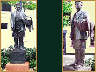 The finished bronze statue varies slightly from the initial Concept Drawings as it was decided that the cloth over the basket should be pulled back to reveal the delicious pies beneath