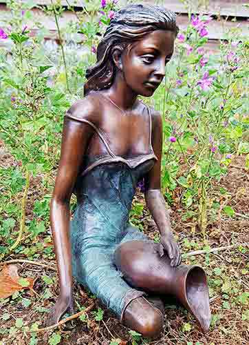 Experience the timeless beauty of the hollow cast bronze figure, Daisy with a Jug : Large : Blue Sculpture, captured in the act of Pouring Water from a Jug