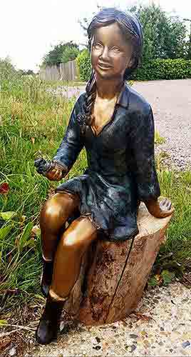 Enjoy basking in the sunshine with the exquisite hollow cast bronze figure, Lucy Soaking up the Sun, presented for sale by Joy Cox and Escar UK Bronze