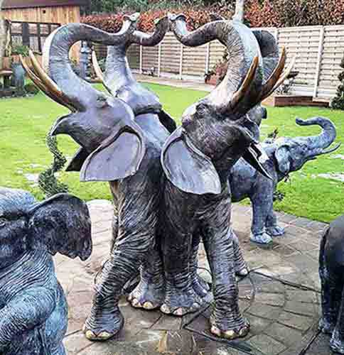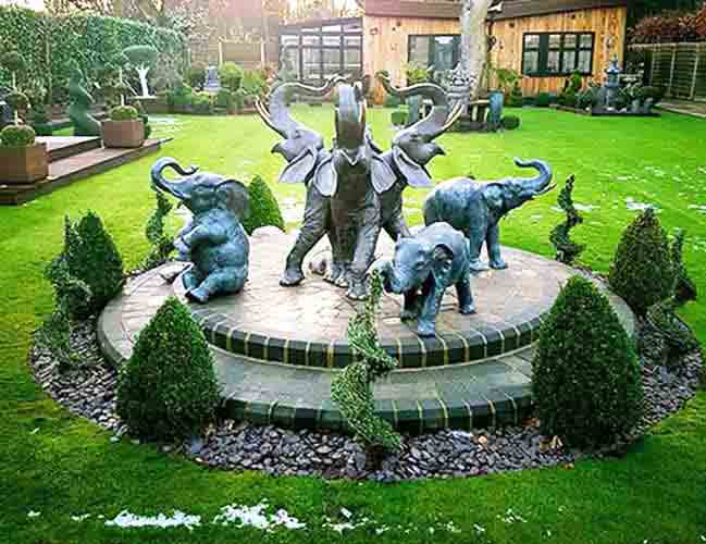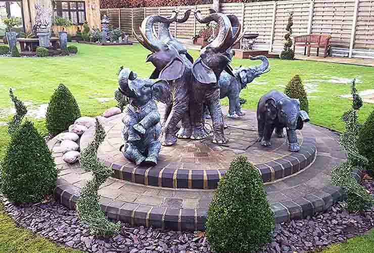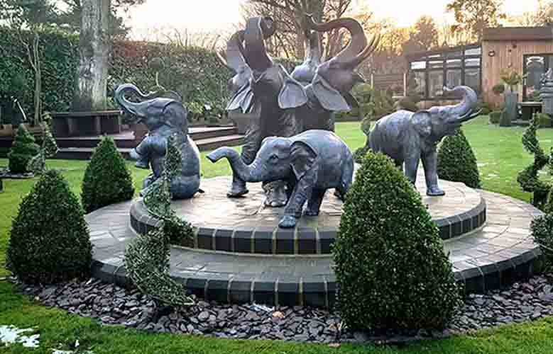 Bring a touch of exotic elegance to your outdoor space with the hollow cast bronze, Four Elephants water feature fountain sculpture, by bronze sculptor John Cox of Escar UK Bronze