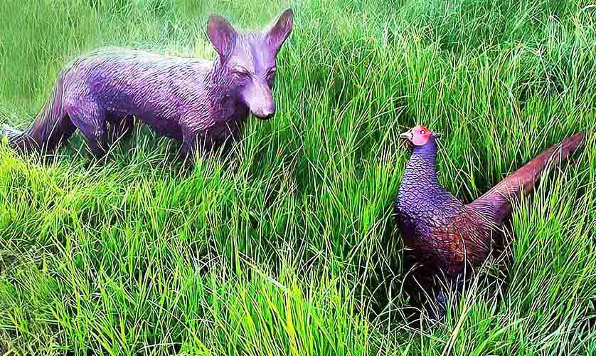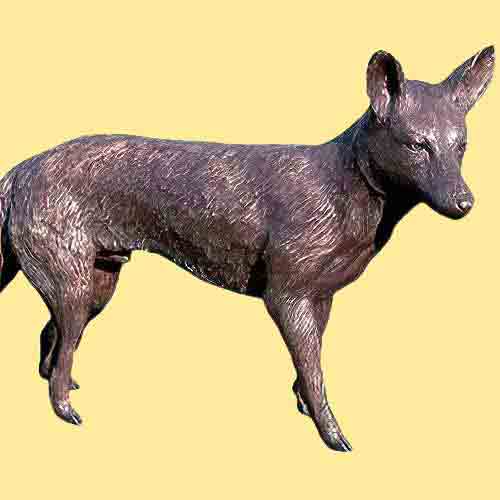Standing 65cm high by 25cm wide by 130cm long, this hollow cast bronze statue in a patination of brown with highlights gives the fox a realistic and lifelike appearance