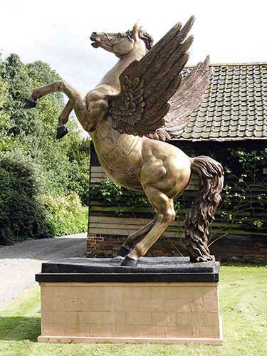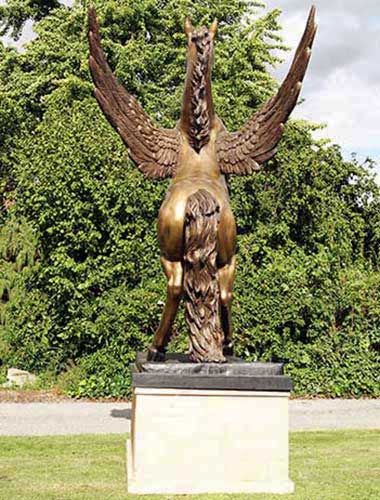 The hollow cast bronze Pegasus Winged Horse : The Spirit of Freedom Sculpture, by bronze artist John Cox of Escar UK Bronze, is a full-sized bronze adaptation of the magnificent zinc-cast winged horse centrepiece, located in the magnificent Italianate gardens of the Powerscourt Estate at Enniskerry in the Republic of Ireland