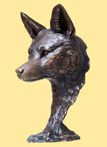 Hollow Cast Bronze Fox Head -:- Table Top Sculpture