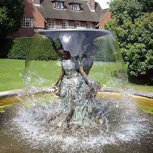 This fountain showcases three enchanting Figures standing gracefully in the centre of the fountain, supporting a bowl above them that fills and cascades water over its edges
